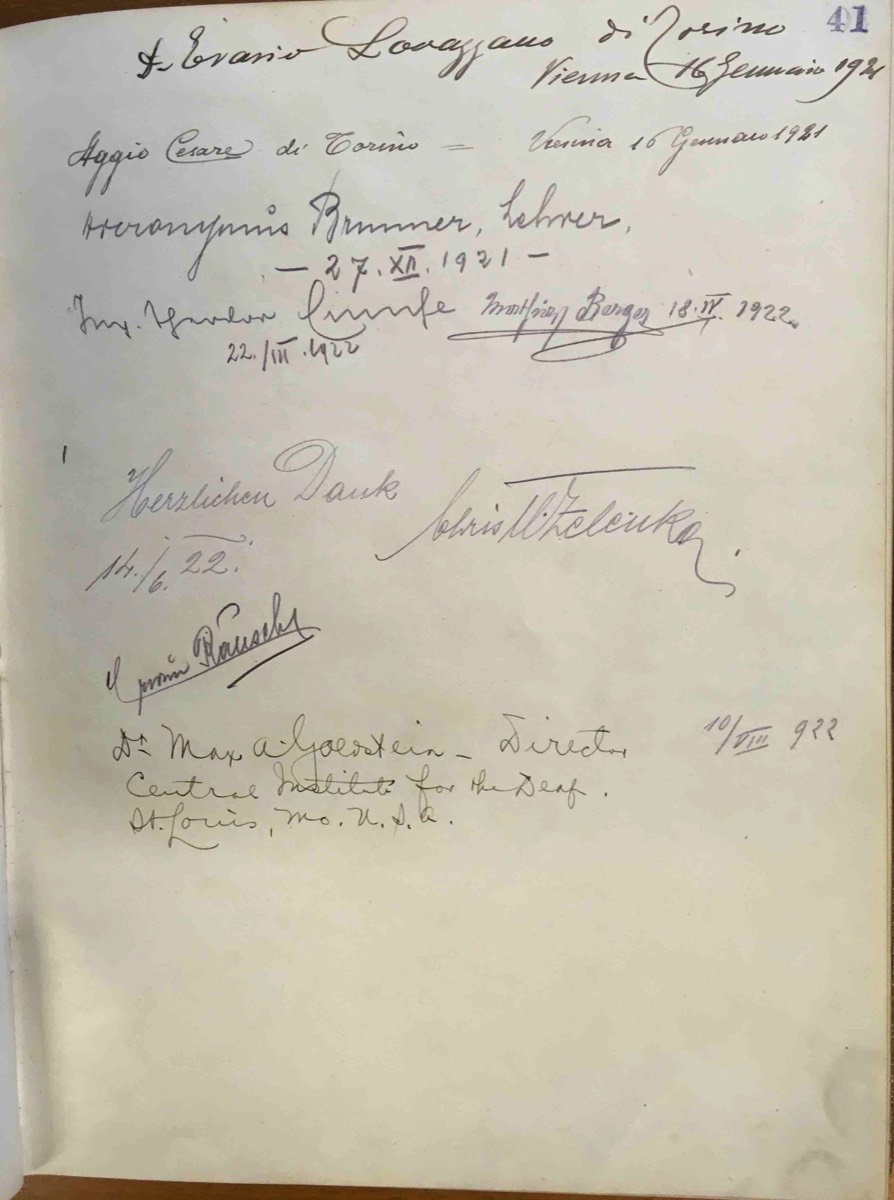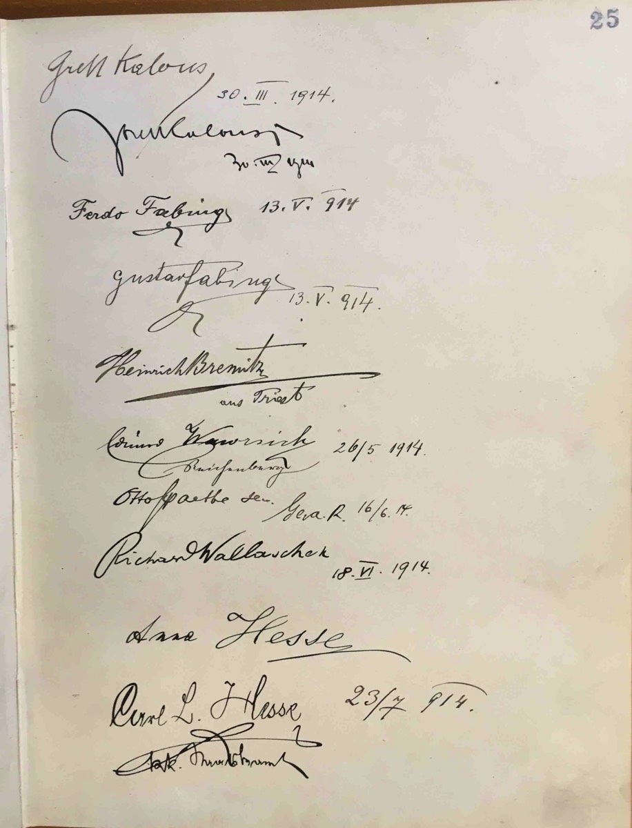 In diesem wunderschönen Buch haben sich alle Besucher der Werkstatt, bzw. der Familie Kotykiewicz eingetragen. Es finden sich viele interessante Namen aus der damaligen Musikwelt. Der erste Eintrag war im Jahre 1912, der letzte an Teofils 90. Geburtstag im Jahre 1970.